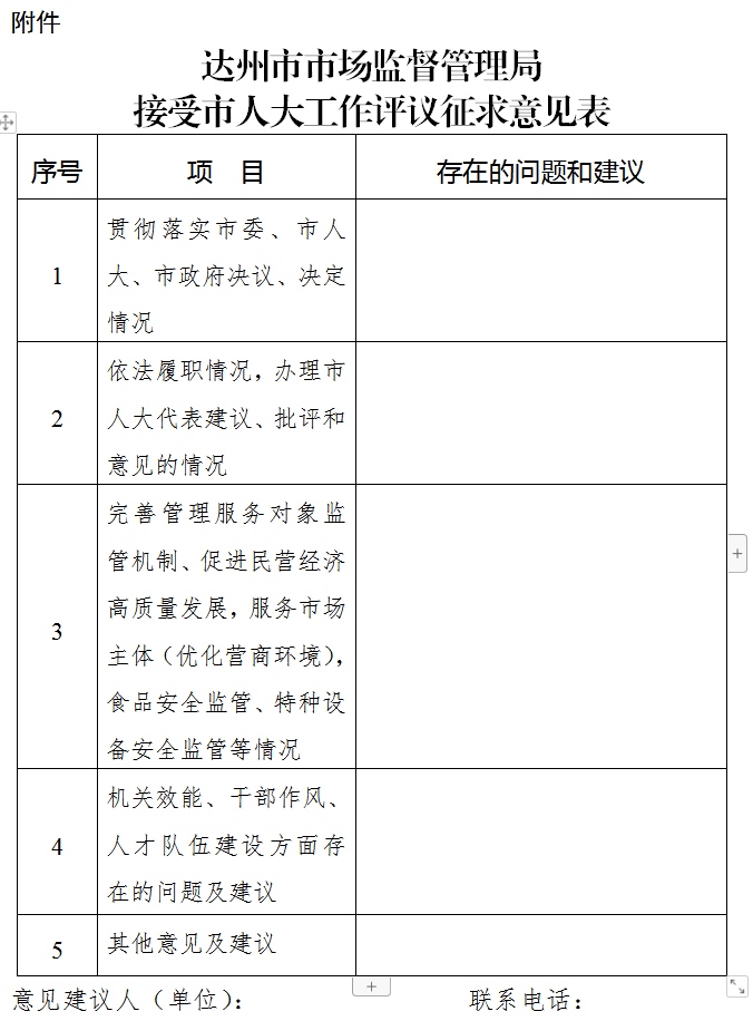 附件:bt365备用网站_必发365手机app_英国最大赌博365网站市场监督管理局接受市人大工作评议征求意见表