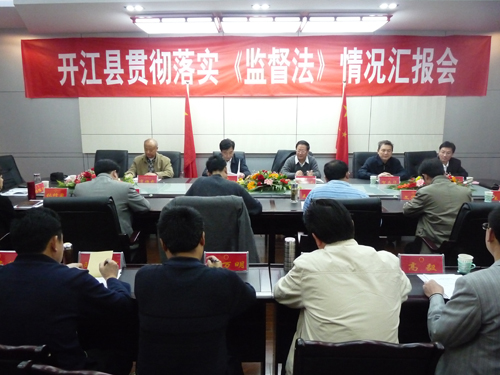 《中华人民共和国各级人大常委会监督法》(以下简称《监督法》)正式颁布实施三年多了,为了深入了解我市各级人大常委会和“一府两院”贯彻执行《监督法》的情况,加强人大自身建设,推动“一府两院”依法行政,公正司法,促进我市经济社会又好又快发展,3月19日至3月22日,市人大常委会执法检查组深入宣汉县、开江县对全市贯彻《监督法》情况开展了执法检查,听取了县人大常委会及“一府两院”关于《监督法》贯彻实施情况的汇报。